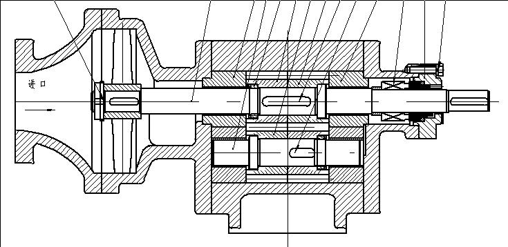 高真空齒輪泵是采用兩級吸入結構,前級是軸向葉輪,吸入液體,輸送到后一級齒輪的吸入端,使后一級齒輪的吸入點提高壓力。這樣葉輪、齒輪混合使用的兩級吸入裝置,可以將吸入水平提高2-3米。